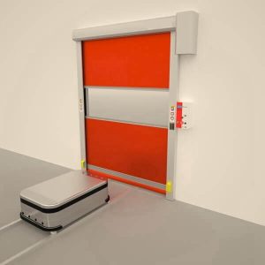 - PVC快速堆积门:柔性抗冲击,高频启闭,损坏后可局部更换